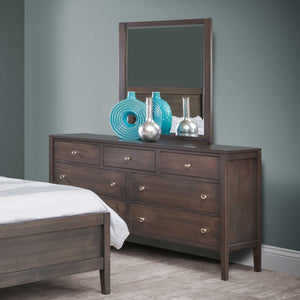 Amish Chelsea Modern 4pc Wood Bedroom Set - This Amish Chelsea Modern 4pc Wood Bedroom Set features cleans lines. Hand crafted by Amish craftsman out of solid northeastern hardwoods. Shown in Maple - Onyx stain and with the Albany Pull. Set IncludesQueen BedBedside Chest65" Double Dresser with MirrorView Stains