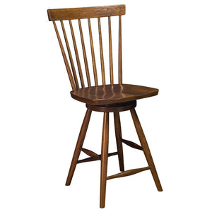 Amish Cordona Windsor Solid Wood Swivel Bar Stool - The Amish Cordona Solid Wood Swivel Bar Stool is handmade in Pennsylvania USA. Available in Oak, Cherry, and Maple this smaller form traditional dining bar stool has been a sure fire hit. Price is for one chair, you can select quantity after you add to cart. Available in 24" Counter Height or 30" Bar Height. Amish Hand