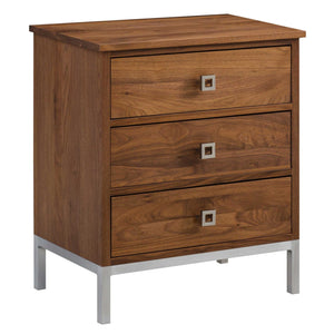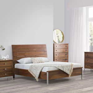Amish Danish Mid-Century Modern Solid Wood 4pc Bedroom Set - The metal feet of this new mid-century bedroom set give it a distinctive appearance. This set is handcrafted out of natural walnut exclusively for you. This set comes with a queen size bed but we do offer other sizes if you build you own bedroom set. Handcrafted by an Amish craftsman out of solid natural walnut and fin
