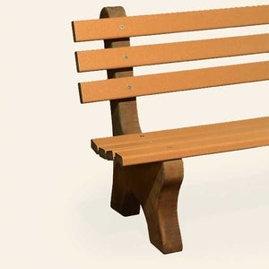 Amish Patio 72" Poly Patio Park Bench with Concrete Legs - The 72" Poly Park Bench is available in all of our poly colors. It comes with concrete legs, available in Natural. Engraving is possible. 72''w x 18'' seat depth x 36''h Seat is 17.5"hHandcrafted a few miles from our store in Lancaster County by an Amish Craftsman. Weighs 386 lbs.Available in solid colorEarth Friendly