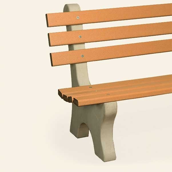 The 72" Poly Park Bench is available in all of our poly colors. It comes with concrete legs, available in Natural. Engraving is possible. 72''w x 18'' seat depth x 36''h Seat is 17.5"h