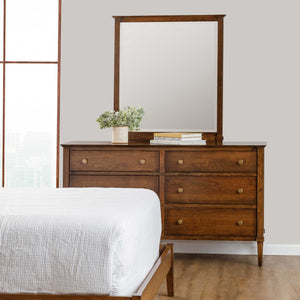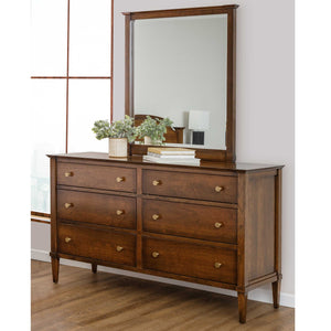 Amish Geneva Solid Wood 70" Triple Dresser with 6 Drawers - DimensionsDresser: 70″W x 19″D x 35⅜”HMirror: 39½”W x 34½”H Shown With:Wood: CherryStain: Vintage WoodsideHardware: 171-SBZ Richard Collection Features:• Dovetailed drawers• Soft close full extension drawer slides• Features a dust panel between every drawer to eliminate racking over time Item Code:Dresser: 84-8626Mirro