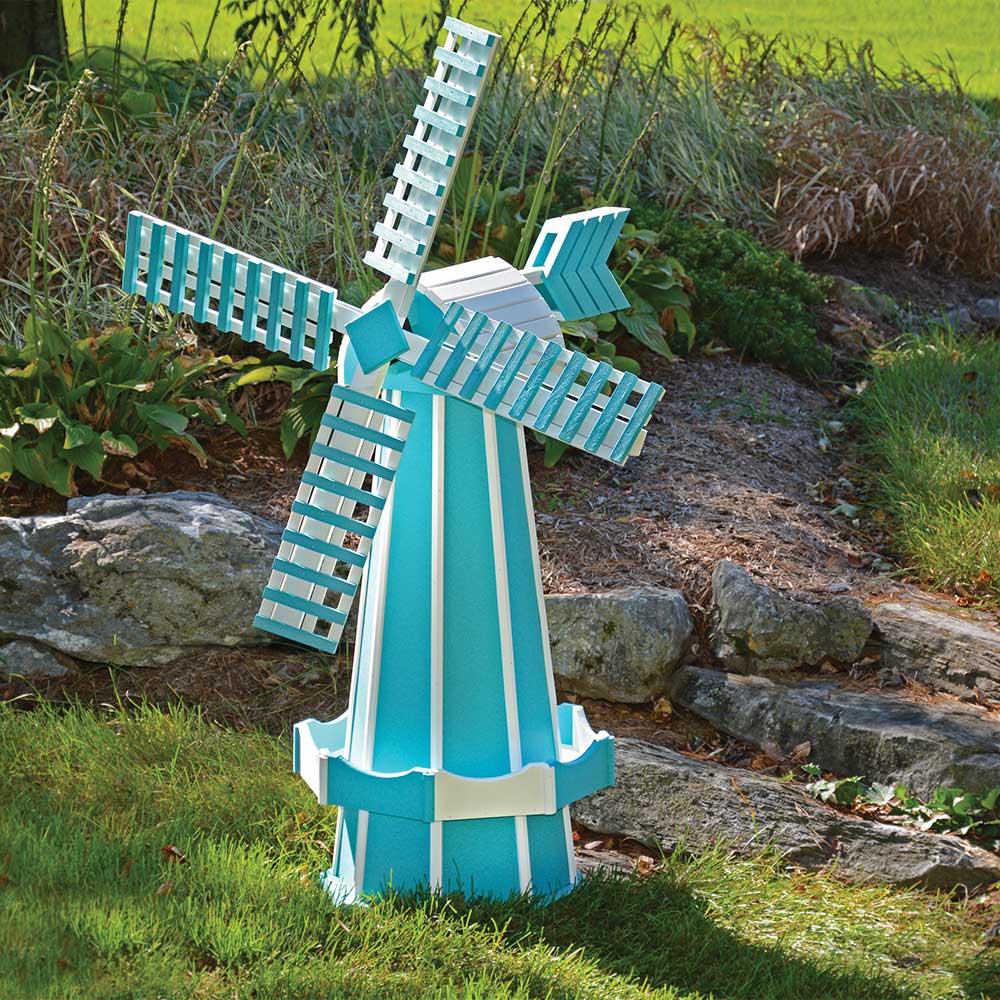 Amish Large 60" poly Outdoor windmill - You can relax knowing this furniture will last! It comes with a 20-year warranty. It's made by hand by Amish craftsmen in Lancaster, Pennsylvania. They use earth-friendly materials made from recycled plastic and strong stainless steel screws for decades of enjoyment! Where it's Made: Lancaster, PAShipping: We ship to a
