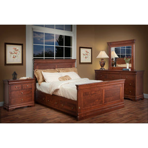 Amish Marseilles 3pc Wood Panel Storage Queen Cherry Bedroom Set