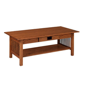 Amish Mission Coffee Table with Drawer - This lovingly handcrafted Mission Junior coffee table is the perfect asset for your living room. Customize every aspect of it! - Amish Handcrafted in Lancaster County - Pick your wood, stain & finish options - Available in Oak, Maple, & Cherry & Quartersawn White Oak - Amish Backed Warranty - Water Resistan
