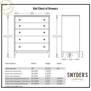 Amish Kiel Mid-Century Modern Solid Wood Chest of Drawers - All new Kiel Amish bedroom furniture is hand made by the Amish right here in PA!  Where Its Made: Lebanon, PAWhat's Included: 1 Chest of DrawersShown in: Maple Wood w/ Vintage Yukon StainDimensions: 38"w x 19"d x 50 1/2"hDrawers: Dovetailed drawer boxes, soft close slidesFinish: Catalyzed Conversion VarnishShipping: Sh
