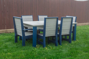 Amish Coastal Patio Dining Set for 6 - Our Coastal Outdoor Dining Set includes a 4’ x 6’ poly Coastal Dining Table, 2 poly Coastal Dining Arm Chairs, and 4 poly Coastal Dining Side Chairs. This set is made of high-quality poly lumber manufactured from recycled plastic. Imagine a beachfront summer evening spent enjoying a meal with family and friends around