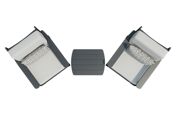 A complete 2-chair set with a side table. Start your VaraMora collection with this comfortable modular set, and you can add on later to create a seating area – to your specifications. These extraordinary pieces are ideal for outdoor relaxation and an elegant addition to your patio or garden decor. It is amazing by itself or a great start or addition to your VaraMora modular system.