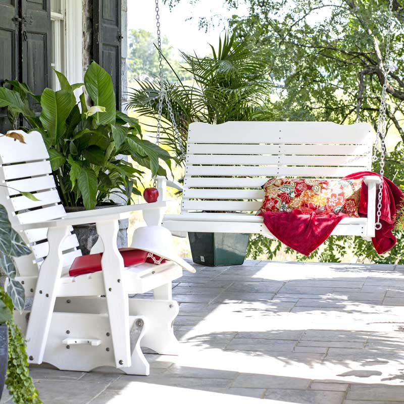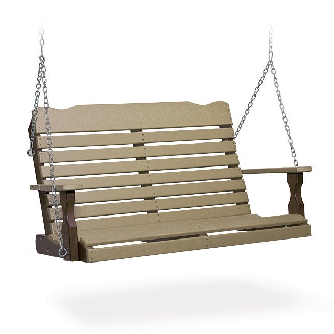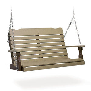 Amish Poly Patio Curve Back 4' Porch Swing - Handcrafted a few miles from our store in Lancaster County by an Amish CraftsmanAvailable in solid color or two color combinationEarth Friendly - Fully RecyclableStainless Steel Bolts & ScrewsNo splinters, splitting, or cracking - always smooth to the touchMain Color: Seat and Back Accent Color: FrameIncludes Chain