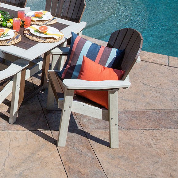 Amish Poly Great Bay 96" Rectangular 9pc Patio Dining Set for 8 - Includes 43"x 96" Dining table with 8 Great Bay Chairs. Shown in Antique Mahogany with White Trim. Handcrafted a few miles from our store in Lancaster County by an Amish Craftsman Available in solid color or two color combination Earth Friendly - Fully Recyclable. To see more of the Great Bay click here.  No splinters,