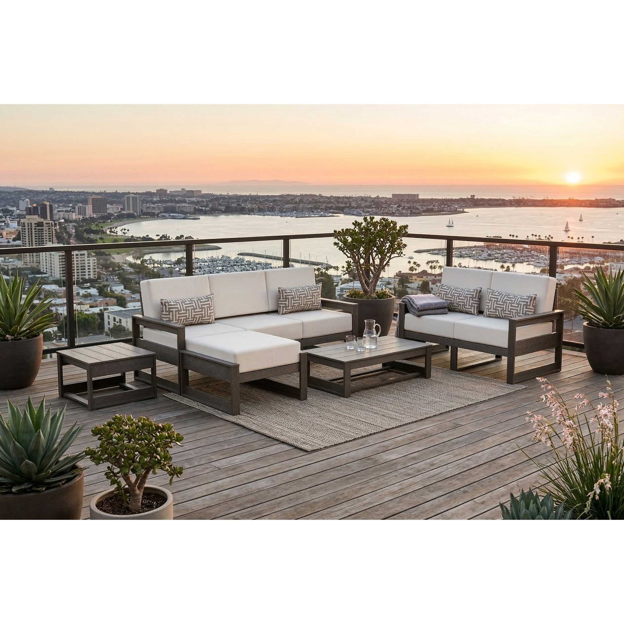 Spacious, stylish, and endlessly comfortable, this Amish Poly Midcentury Modern 5-Piece Patio Set is designed to elevate your outdoor living experience. With generous seating and thoughtfully coordinated accent pieces, it creates a cohesive space for everything from laid-back lounging to lively conversation. The sleek lines and modular design bring a modern edge, while the plush cushions and handcrafted quality invite you to settle in and stay a while.