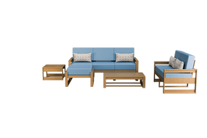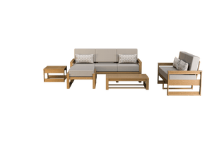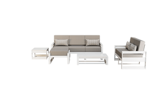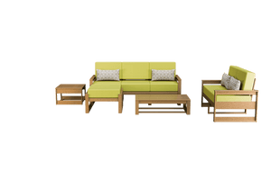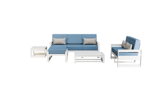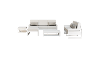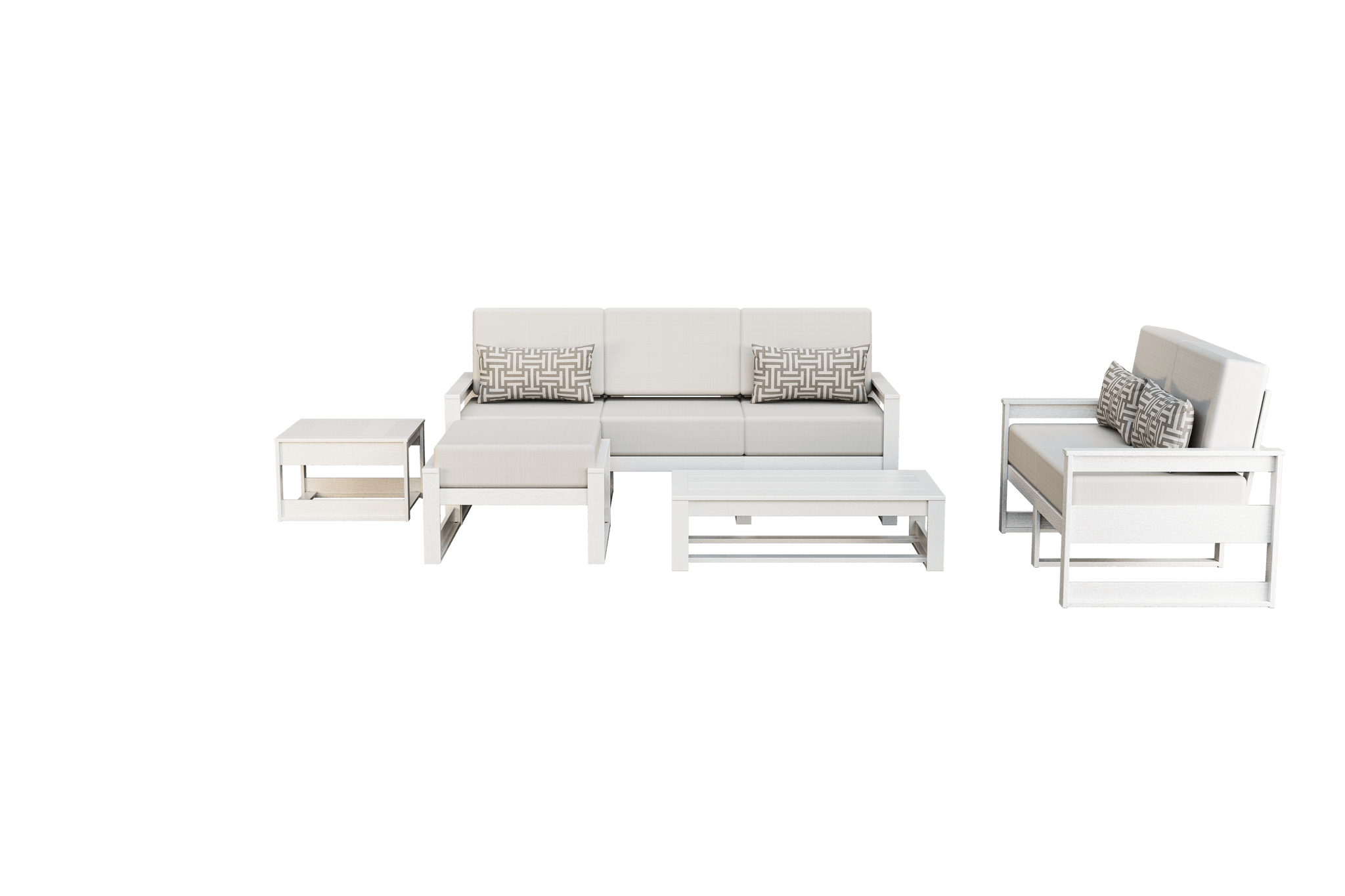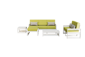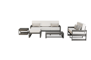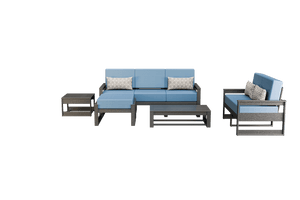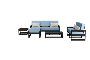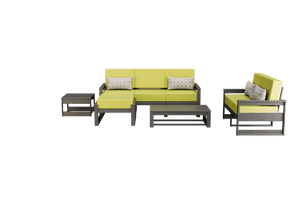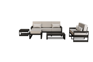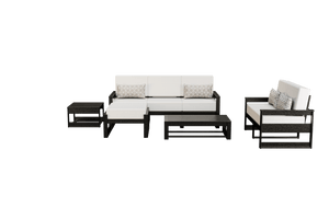 Includes 1 ottoman, 1 3-seat sofa, 1 Loveseat, 1 End Table & 1 Coffee table and 4 pillows.
