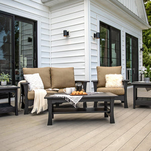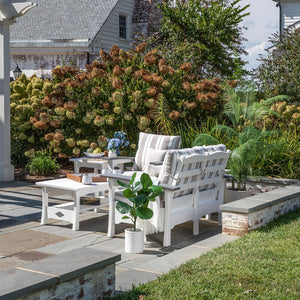 Amish Mission Colonial Patio Love Seat Set - The standard in outdoor relaxation. Sink into the cushioned deep seating Love Seat and enjoy peaceful bliss. This Love Seat never rots, never rusts, and lasts forever. Recycled poly & Stainless steel construction. It doesn't get any better than this. And handcrafted just 5 miles from our store.Includes mission love