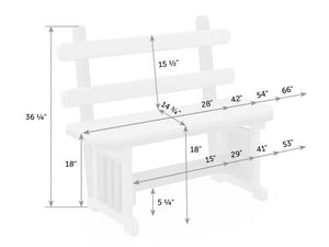 Amish Poly Patio Mission Bench with Back - Handcrafted a few miles from our store in Lancaster County by an Amish CraftsmanAvailable in solid color or two color combinationEarth Friendly - Fully RecyclableStainless Steel Bolts & ScrewsNo splinters, splitting, or cracking - always smooth to the touch
