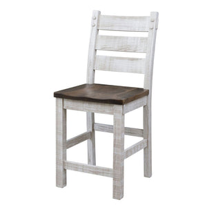 Amish Preston Round Rustic Pedestal Counter Table Set - Available in rustic Oak Reclaimed Barn wood. Set includes1 - 42" Preston Counter Table (36' high)4 - Hoosier Bar ChairsShown in: Top and Seats - Carbon / Rest - White w/ Pewter glazeHandcrafted in Pennsylvania View StainsMain Color is Base, Accent Color is Top/Seat
