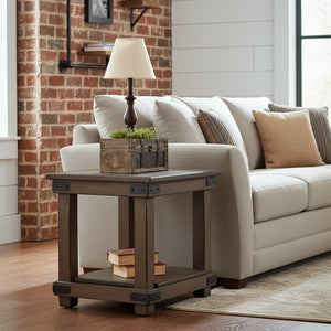 Amish Rustic 20" End Table with Iron Accents