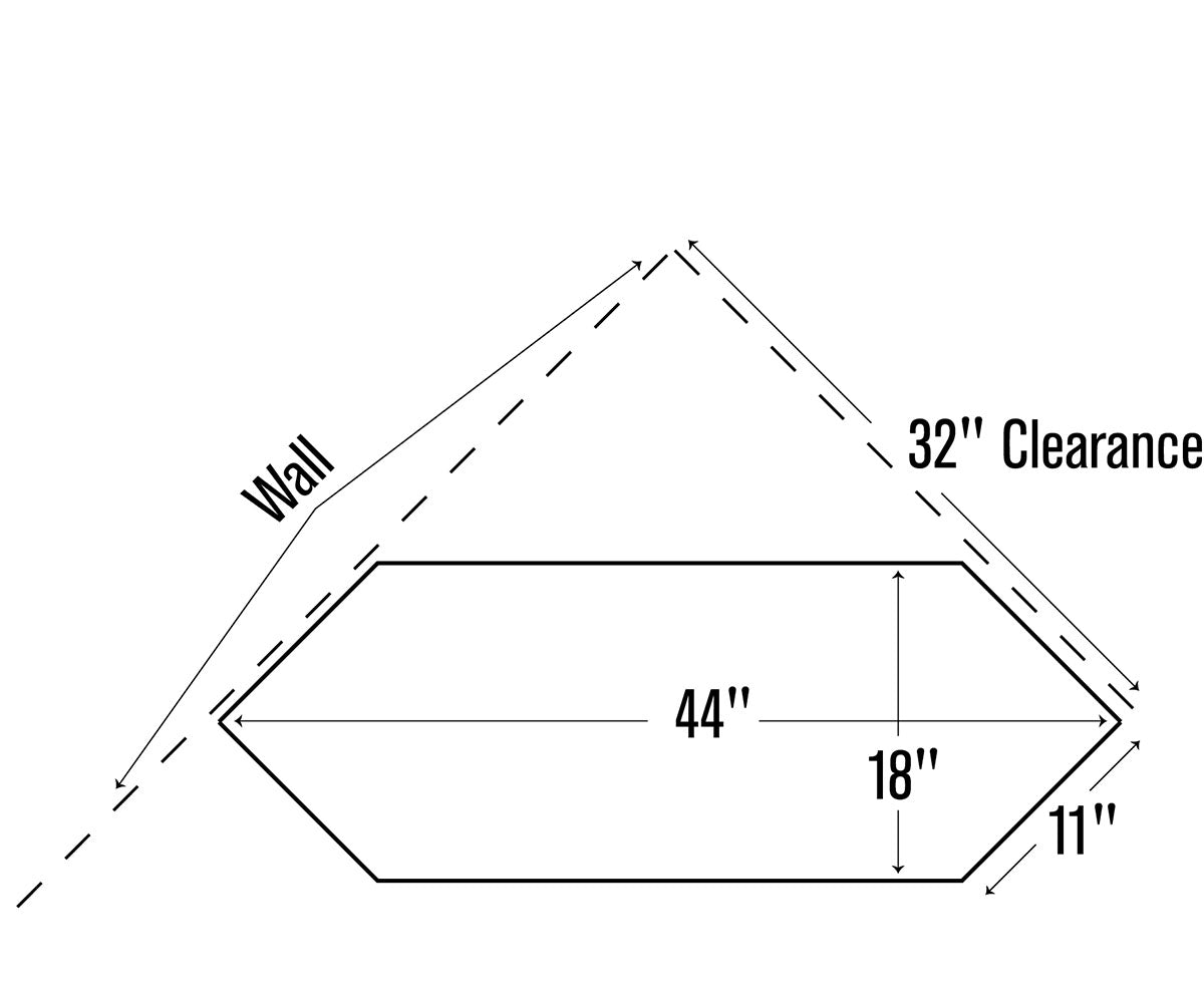 Amish Shaker 44" Corner TV Stand - Dimensions: 44"W x 18"D x 32"H Wallspace Needed: 32"W DVD Opening: 6"H Shown With: Wood: Tiger Maple Stain: Harvest Features: • One adjustable shelf behind the set of doors Item Code: S4432A-2D