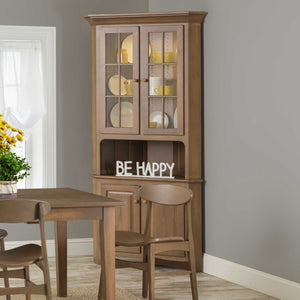 The Amish Shaker Solid Wood China Corner is handcrafted only miles from our store in Lancaster County, PA out of northeastern hardwoods! Limited Lifetime Warranty Available in Oak, Brown Maple, Cherry, Maple, Elm, Hickory, and Quartersawn Oak.