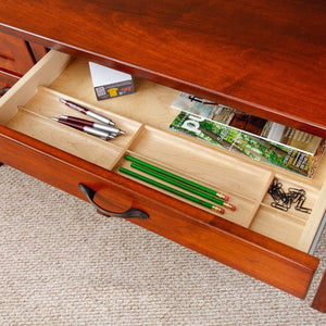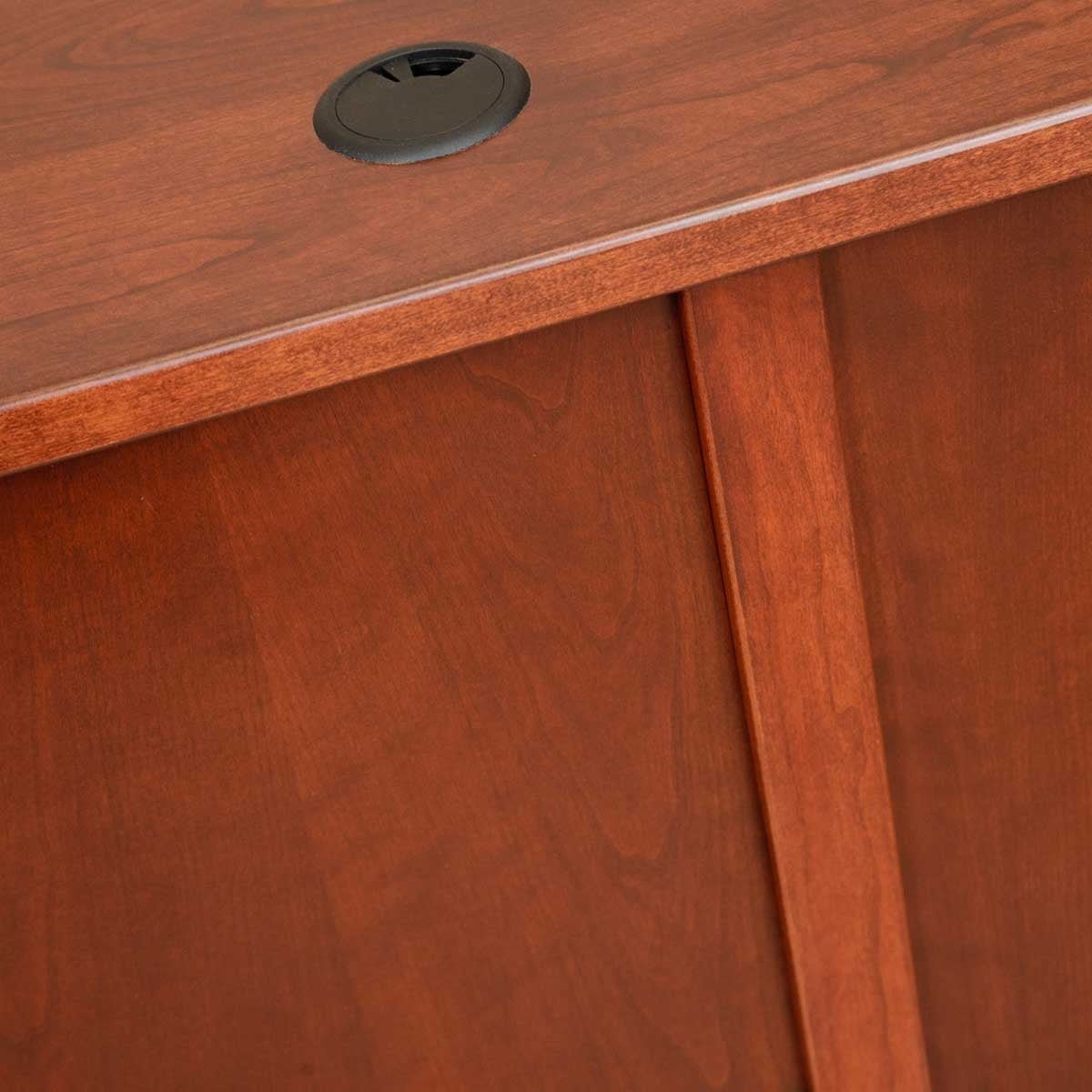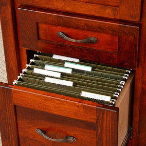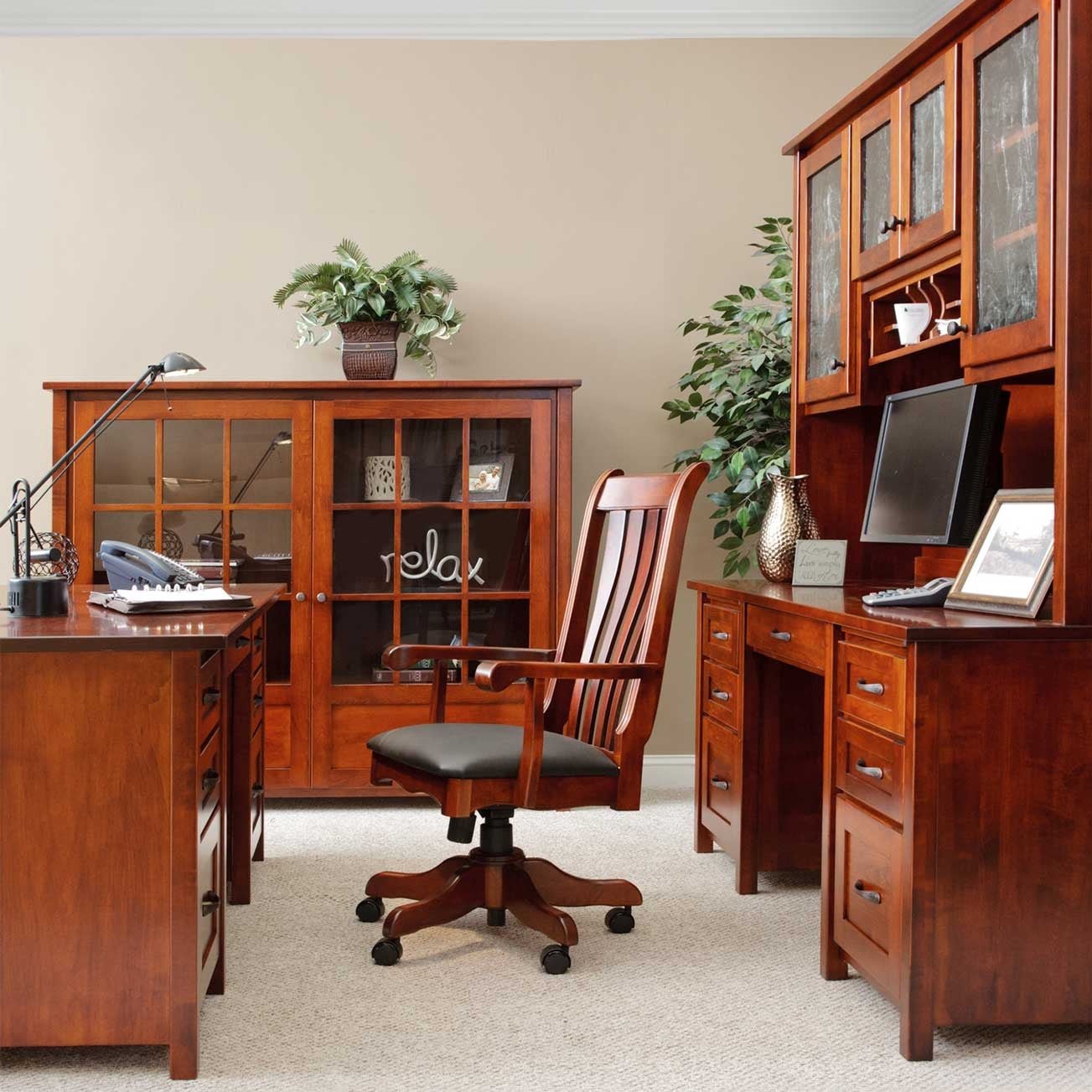 Amish Handcrafted in Lancaster County Drawing from the lines of our popular Eshton model, this new desk group features recessed door and drawer panels. The transitional style will complement most modern offices while blending well with older architecture.