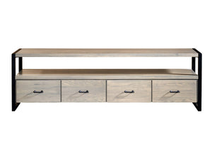 Amish Silver Spring Solid Wood Media TV Console - Available in 4 sizes Available in brown maple, rustic cherry, oak, cherry, rustic white oak, and rustic walnut. Solid Wood Dovetailed Drawers Steel Frame Ends 60" w, 72"w, 84"w, or 96"w x 18" d x 26" h Shown with b147 hardware