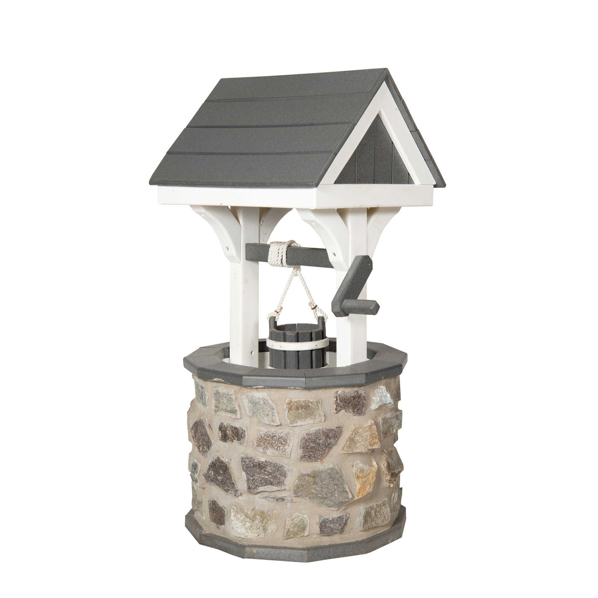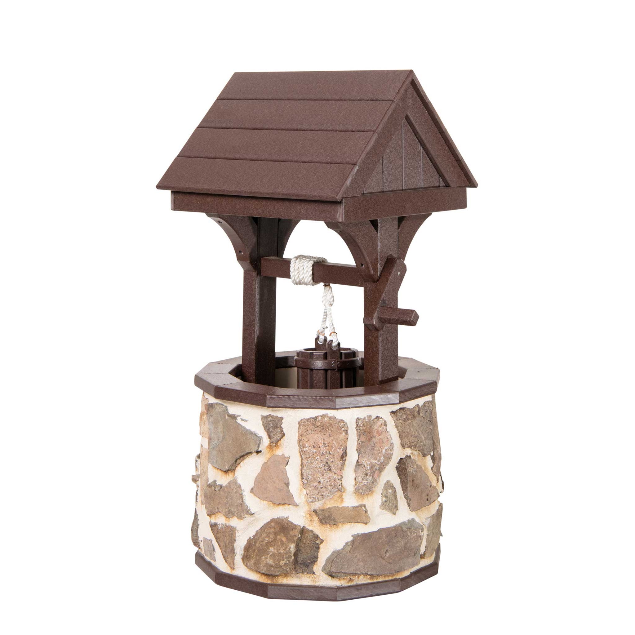 Amish Small stone wishing well - You can relax knowing this furniture will last! It comes with a 20-year warranty. It's made by hand by Amish craftsmen in Lancaster, Pennsylvania. They use earth-friendly materials made from recycled plastic and strong stainless steel screws for decades of enjoyment! Where it's Made: Lancaster, PAShipping: We ship to a