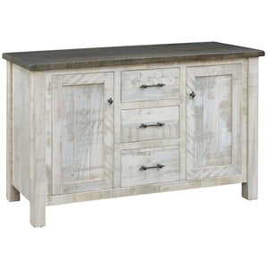 The Amish Alamo Rustic Dining Storage Server is amish Handcrafted only miles from our store in Lancaster County, PA out of northeastern hardwoods! Shown in Rough Sawn Wormy Maple with Aged Amazing Walnut top & the Rest Aged Whitewash. Limited Lifetime Warranty Shown in Rough Sawn Wormy Maple