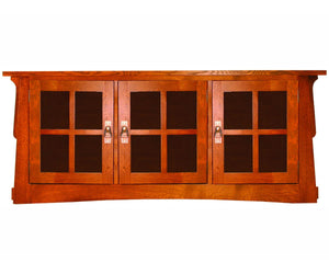 Amish Solid Wood Alamosa 3-Door TV Console - 8X-2019: tv console - 65” W x 19” D x 27” H Features: doors with plain glass, one adjustable shelf behind doors, A049 hardware Options: wood doors