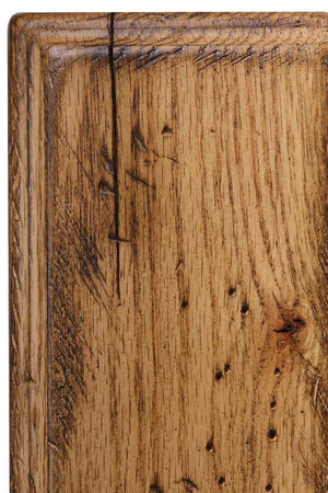 Antiquated Natural on Rustic Oak. Nicks, rounded corners, random filed edges, and light glazing. Unique irregularities such as knots and other small imperfections. Open knots are filled with black epoxy unless otherwise specified. (available in all Oak colors – Not available on all pieces). 3"x 5" sample. It can be returned for full credit.