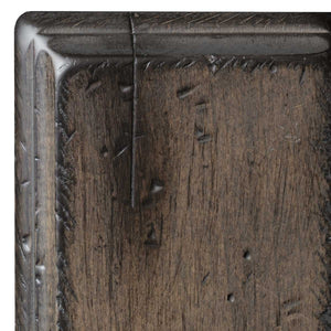 Antiquated Smoke on Brown Maple. Extra nicks and holes, filed edges, simulated cracks, and heavy glazing. Rustic Brown Maple. Unique irregularities such as knots and other small imperfections. Open knots are filled with black epoxy unless otherwise specified. Features Standard Distressing on the back of the Sample. (available in all Brown Maple colors. Not available on all pieces). 3"x 5" sample. It can be returned for full credit.