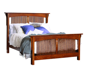 Amish Solid Wood Artesano Arched Spindle Bed - The Artesano Mission Collection pays tribute to the individuality of the Arts & Craft movement by incorporating our signature inlay (made with four unique wood species) on its pieces. Each piece is then serial numbered and signed by the craftsman; giving you a one-of-a-kind heirloom!