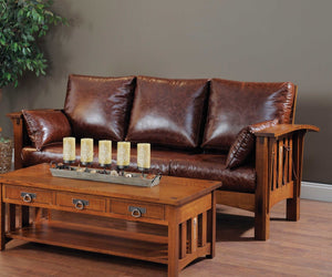 Amish Solid Wood Artesano Morris Sofa - 8X-4100: sofa - 82” W x 40” D x 38” H Features: fabric upholstery Options: leather upholstery*
