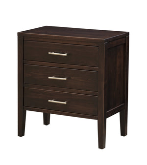 Amish Chelsea 3-Drawer Bedside Chest - This bedside chest features cleans lines and self closing slides. Hand crafted by Amish craftsman out of solid northeastern hardwoods. 2nd picture Shown in Maple - Onyx stainView Stains