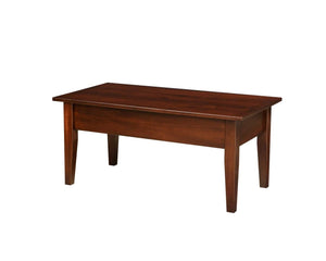Amish Craftsman Shaker Lift Top Coffee Table - This lovingly handcrafted Shaker Lift Top Coffee table is the perfect asset for your living room. It doubles as a coffee table or working and eating stand - Amish Handcrafted in Lancaster County - Pick your wood, stain & finish options - Available in Oak, Maple, & Cherry - Amish Backed Warranty - Water Resistan
