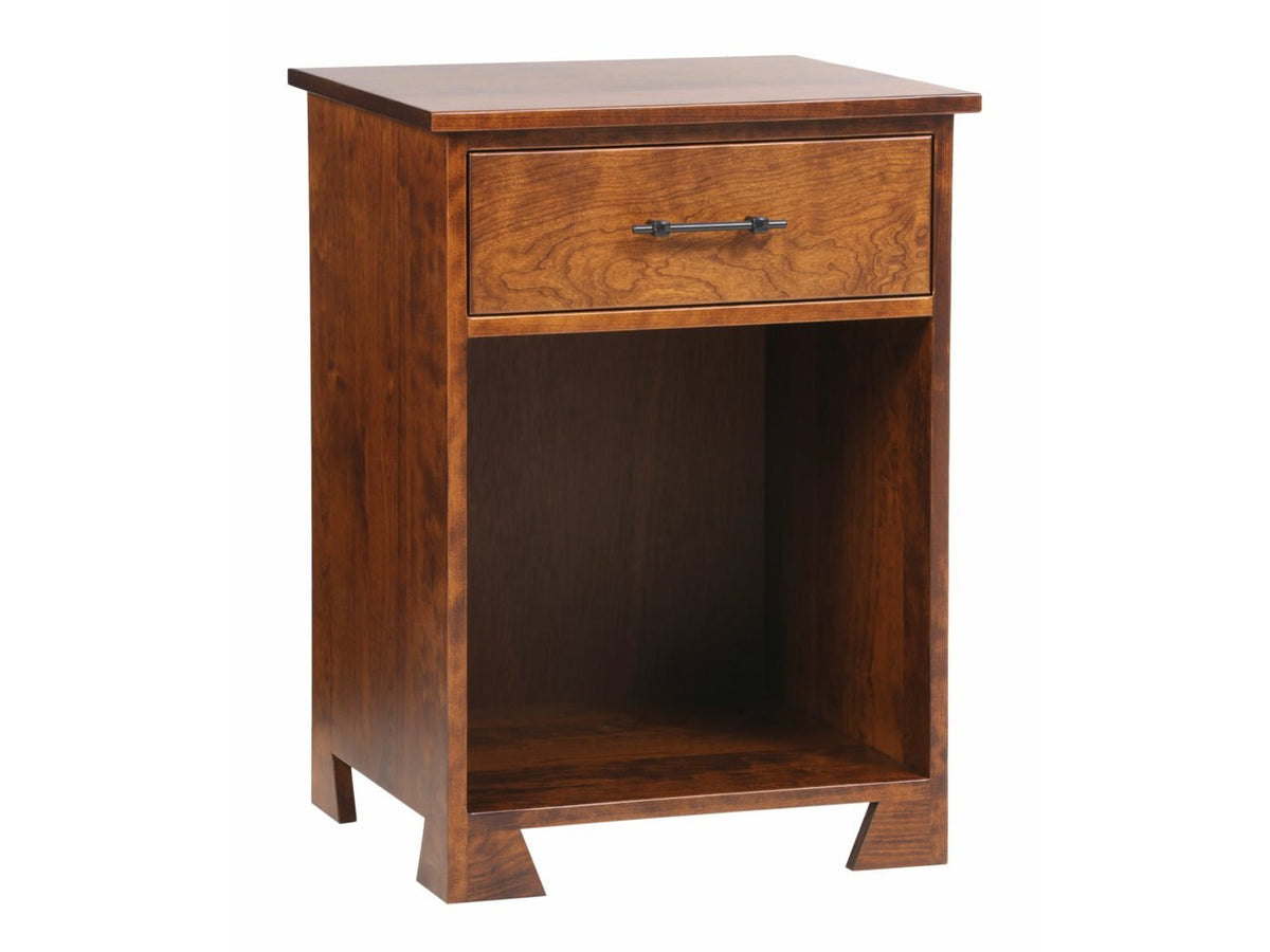 Amish Solid Wood Fredericksburg Open Nightstand - 7X-4214: open nightstand Size: 21" W x 18 1/4" D x 28 3/4" H Features: B144 hardware Undermount soft-close drawer slides