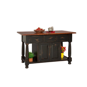 Amish French Country Open Kitchen Island. Elegant columns frame this casual french style that accents any kitchen. Pick from a variety of tops.  Amish Handcrafted only miles from our store in Lancaster County, PA out of northeastern hardwoods! Limited Lifetime Warranty Available in Oak, Brown Maple, Cherry, Maple, Elm, Hickory, and Quartersawn Oak.