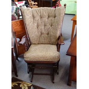 Amish High Wing Back Cushion Glider Rocker - For replacement cushions only click hereAvailable in Oak or Cherry with a large selection of fabrics. Each wing back glider rocker is built to order in southeastern Pennsylvania. This is the same comfortable design we have been selling for over 40 years. Shown in Oak Pecan (1st pic) We also offer this in a swivel style