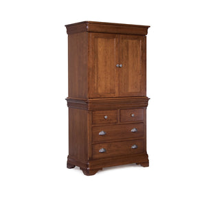 Amish Marseilles 2-Door Armoire - Our premium sleigh molding bedroom set! This Armoire features the curved lines of the old world combined with the craftsmanship of the new. Handcrafted by Amish craftsman out of solid northeastern hardwoods. Drawers are dovetailed and feature concealed drawer slides that effortlessly self-close. Doors are wrap around.