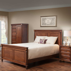Amish Milano Panel Bed with Fluted Legs - This Milano bed features fluted columns and solid panels. Pictured with standard high Footboard. Optional drawer units available. Hand crafted by Amish craftsman out of solid northeastern hardwoods. Shown in Cherry - Woodberry stainView StainsView Hardware