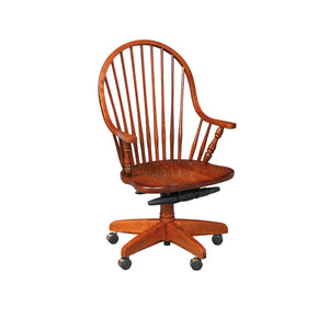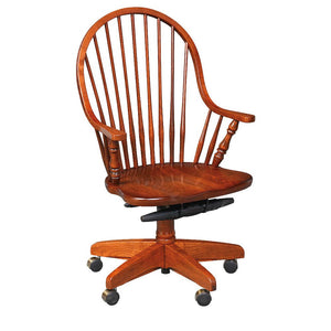 Amish New England Continuous Arm Wood Windsor Desk Chair - This desk chair is available in Oak, Cherry, and Maple. This desk chair includes center pivot tilt/swivel mechanism with gas cylinder height control and tilt/ tension adjustment. Handcrafted in Lancaster County Durable Water Proof Finish View Available Finishes