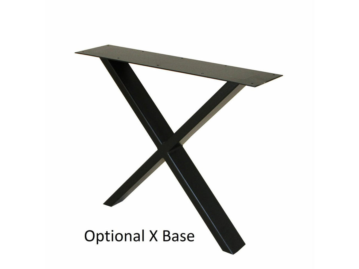 Amish Solid Wood Quebec Dining Bench - #10904 72" Quebec Bench - 72" W x approx. 16" D x 17 1/2" H #10905 84" Quebec Bench - 84" W x approx. 16" D x 17 1/2" H #10906 96" Quebec Bench - 96" W x approx. 16" D x 17 1/2" H Standard Features: 1 5/8" thick live edge top (width may vary) silver powder-coated metal base Options: All metal bases are available in sil