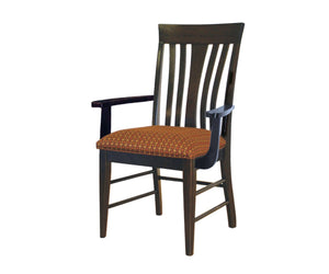 Amish Solid Wood Rodhe Dining Chair - Shown with optional fabric seats #11634 Rodhe Side Chair 19 7/8" W x 38 1/2" H #11635 Rodhe Arm Chair 24 5/8" W x 38 1/2" H Standard Features: wood seats Options: fabric seats (additonal cost) leather seats $