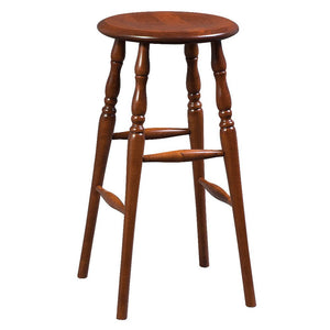 Amish Solid Wood Round Bar Stool - The Amish Solid Wood Round Bar Stool is hand-made by the Amish in Pennsylvania using traditional woodworking techniques honed over generations. Shown with the turned leg but also available with a plain Shaker-style leg. We have offered this craftsmen's stool for over 30 years. Available in Oak, Cherry, and Maple. Price