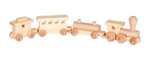 Amish Wooden Toy Train - #197 Train  5"h x 24"l x 3"w FREE SHIPPING Amish Handcrafted out of Pine in Lancaster County, Pennsylvania. Our wooden trainset is kid-powered and ready for adventure! Train cars can be linked together and removed. Open-ended, kid-powered play builds creative expression Trajectory movement encourages gross motor develo