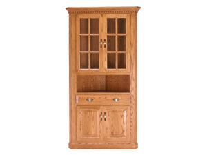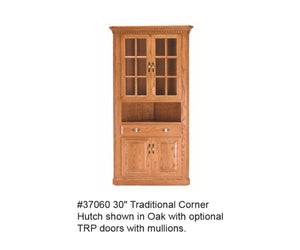 Shown in Oak with optional TRP doors with mullions #37060 Traditional Corner Hutch 30" wall space x 42-1/4" W x 80 3/4" H