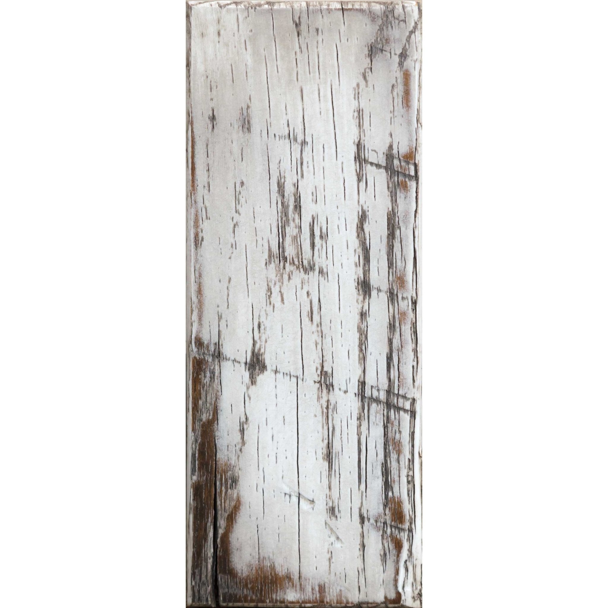 White Paint - Van Dyke Brown Glaze on Oak Barnwood. This sample only applies to the Barnwood Collection. Unique irregularities such as knots, nailholes, ect. Open knots are filled with black epoxy unless otherwise specified. Sample Size may vary. It can be returned for full credit.
