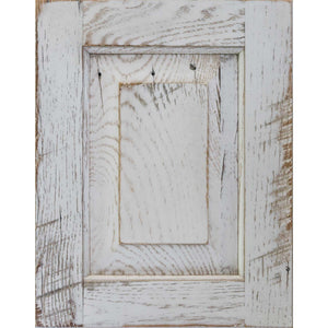 White with Pewter Glaze on Oak Barnwood. This sample only applies to the Barnwood Collection. Unique irregularities such as knots, nailholes, ect. Open knots are filled with black epoxy unless otherwise specified. Sample Size may vary. It can be returned for full credit.