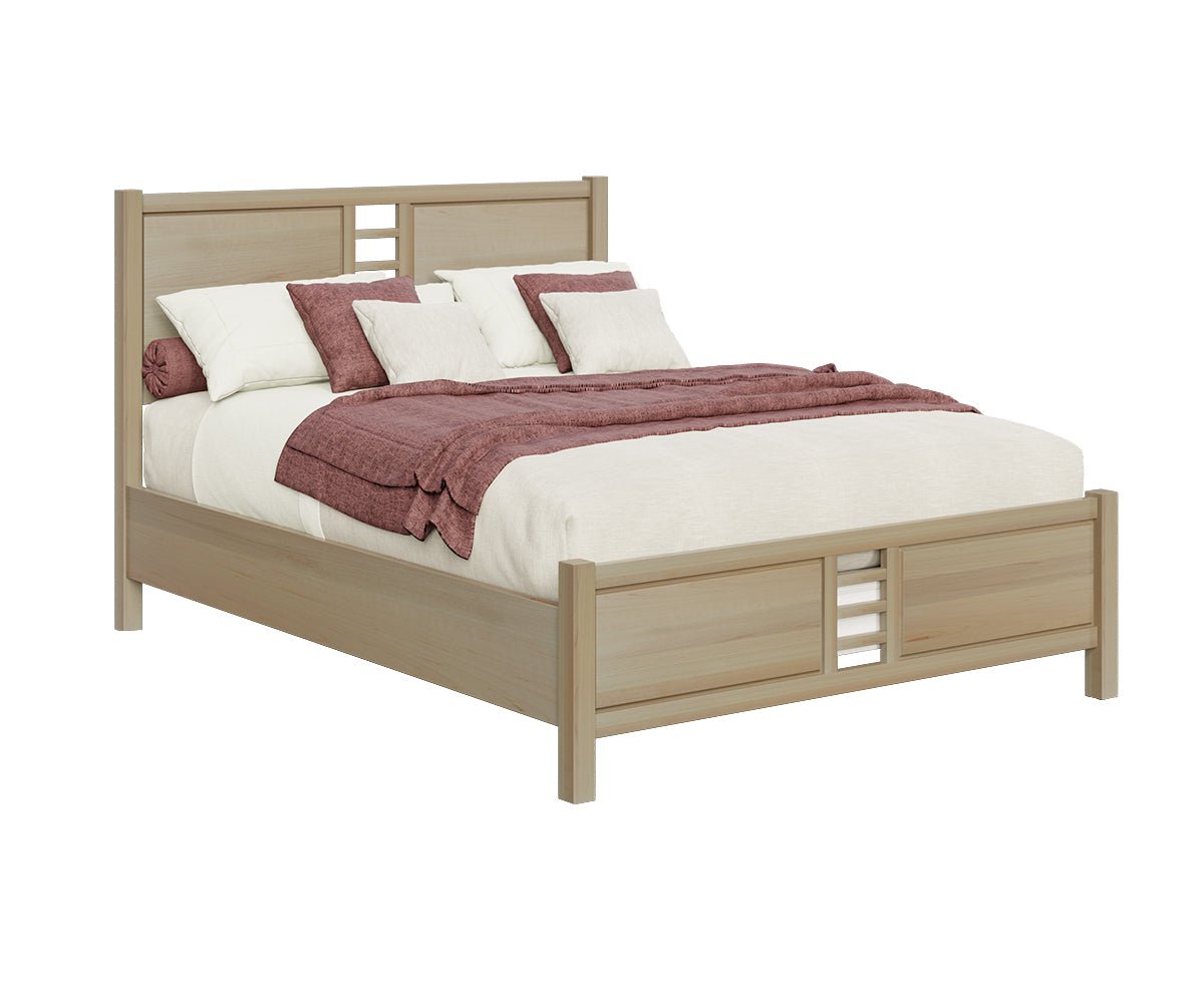 Amish Modern Stowe Panel Bed - Quick Ship - The Stowe Modern Panel Bed compliments any space to create a modern sanctuary fit for the royalty in your home. The bed’s broad headboard and footboard feature a cut-out design that adds just the right amount of detail to a contemporary bedroom. The quick ship version is available in oak. 3X-4588: Queen – 63 1/2″ W x 8