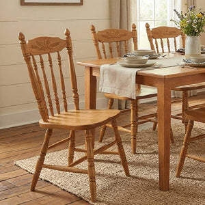 A classic windsor chair with wheat design on back that we have sold for over 40 years, the Summerfield Royal chair is available in solid oak hardwood. This heirloom quality chair is designed to be handed down over generations. Shown in Oak - Pecan. Price shown is per chair.
