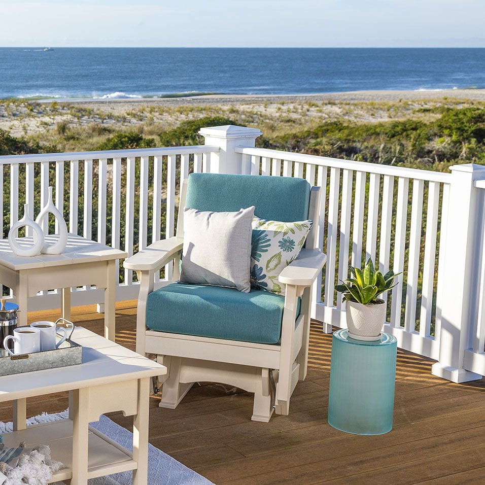 Amish Van Buren Patio Cushion Glider Chair - Love your patio again. Enjoy the same comfort outside as you do in your living room with the Amish Van Buren Patio Cushion Glider. This glider is carefully constructed to provide you a lifetime of service. Fasteners are hidden for a more luxurious look, each piece is also carefully sanded smooth for superior feel and c