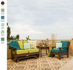 Amish Van Buren Patio Cushion Glider Chair & Side Table Set for 3 - Love your patio again. Enjoy the same comfort outside as you do in your living room with the Amish Van Buren Patio Cushion Glider Chair & Side Table Set for 3. Carefully constructed to provide you a lifetime of service. Fasteners are hidden for a more luxurious look, each piece is also carefully sanded smooth for s